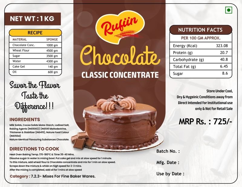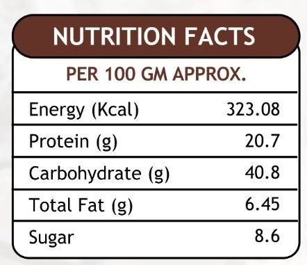 Milk Solids, Cocoa Solids Maize Starch, Lodized Salt, Raising Agents (INS500(1) (INS541 Maltodextrine, Thickener & Stabilizer (INS415), Nature Food Colour (INS150d)Nature Identical Flavouring Substances Chocolate.