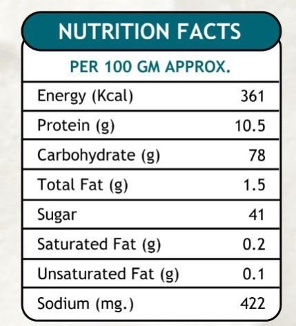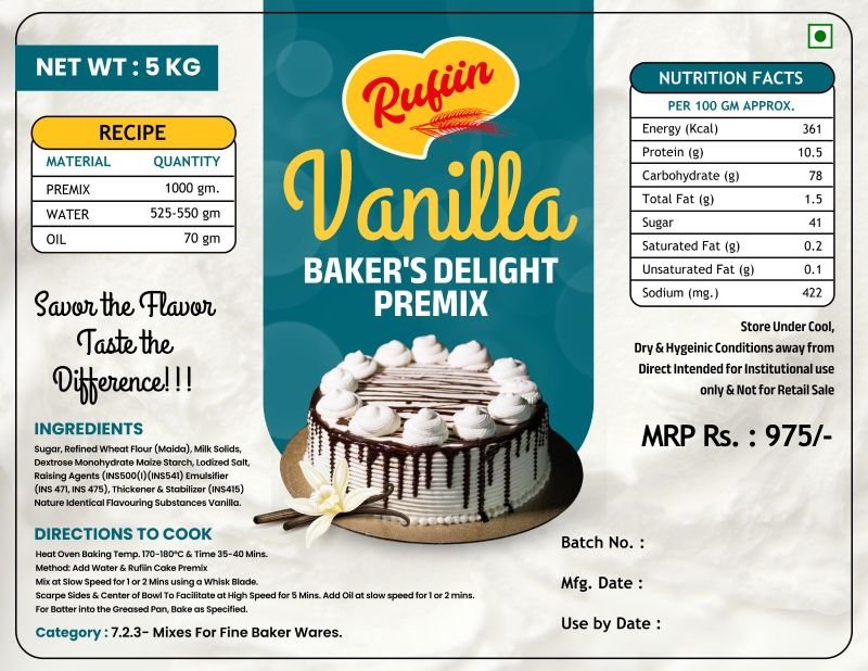 Sugar, Refined Wheat Flour (Maida), Milk Solids, Dextrose Monohydrate Maize Starch, Lodized Salt, Raising Agents (INS500(I) (INS541) Emulsifier (INS 471, INS 475), Thickener & Stabilizer (INS415) Nature Identical Flavouring Substances Vanilla.